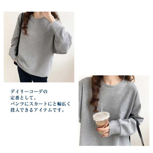 | 【M〜2XL】【ワッフル】【3color】 ゆるっとさが可愛いプルオーバートップス。 大人カジュアルなアクセントをプラスする、シンプルながらもオシャレ。 デイリーコーデの定番として、パンツにスカートにと幅広く投入できるアイテムです。 デイリーからお出かけまであらゆるシーンに大活躍大人のこなれ感漂う | |