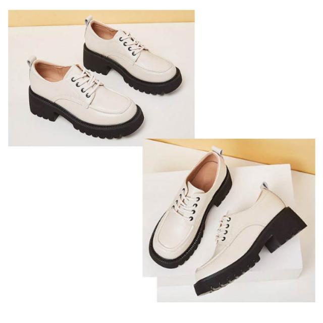 | 【2タイプ】美脚+快適さの両方を叶えてくれるレースアップシューズ。 高品質な合成皮革で作られております。 ほどよい丸さのラウンドトウのアッパーデザインなのでとてもかわいい。 存在感のある厚底ソール+太ヒールデザインは安定感があり、履きやすい。 飽きの来ない定番シンプルプレーンデザインなので、カジュアルスタイルで大活躍。 | |