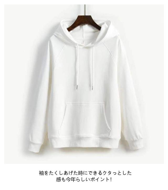 | シンプルで着回ししやすい定番のパーカートレーナー。薄手で軽いのに、裏ソフトフリースであったか、寒い時期に大活躍! 袖をたくしあげた時にできるクタっとした感も今年らしいポイント! ボリューム感のあるフードが顔回りをスッキリ見せてくれます。シンプルデザインだからどんなアイテムとも合わせやすいのが嬉しい。 ボトムはデニムなどのパンツやロングスカートと相性抜群、パンツはワイドでもタイトでもオシャレに着こなせます。 | |