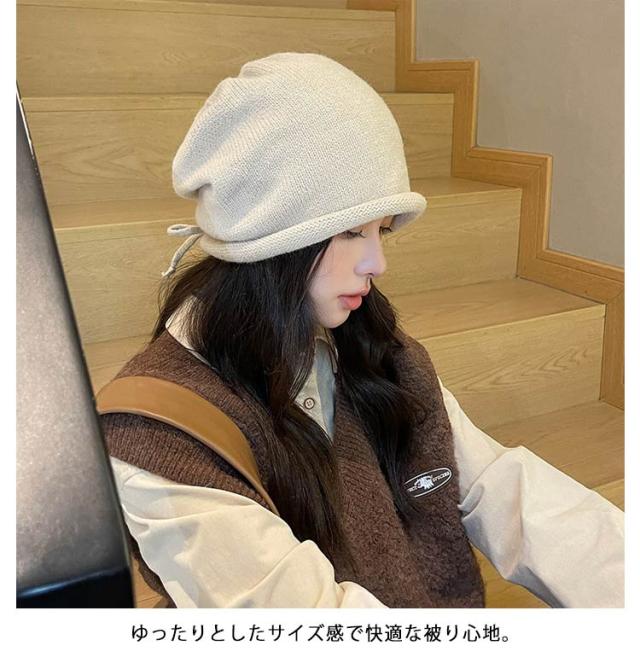 | 【ロール&ルーズ ニット帽子】【全4色】 締め付け感がなく、ルーズなシルエットがおしゃれなニット帽。 かぶり口のロールデザインがポイント。 ゆったりとしたサイズ感で快適な被り心地。 後ろ側にリボン紐が付いているので簡単サイズ調整。後ろを絞って自然と出来るギャザーの風合いがオシャレな帽子。 おしゃれなデザインで男性、女性、性別問わず春夏秋冬、一年中季節問わずかぶれます。 | |