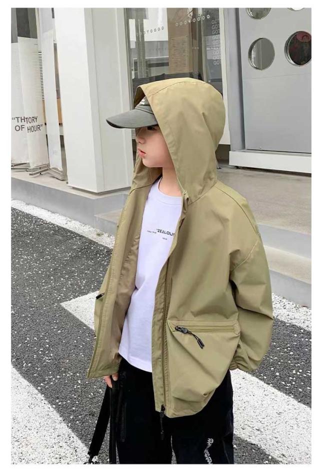 長袖 汚れにくい アウター 子供服 防風 キッズ 防水 ウィンドブレーカー カジュアル コート 送料無料 ジャケット ジャンパー 薄手 秋物 耐油 男の子 ジップアップ トップス ジュニア フード付き アウトドア 春 秋