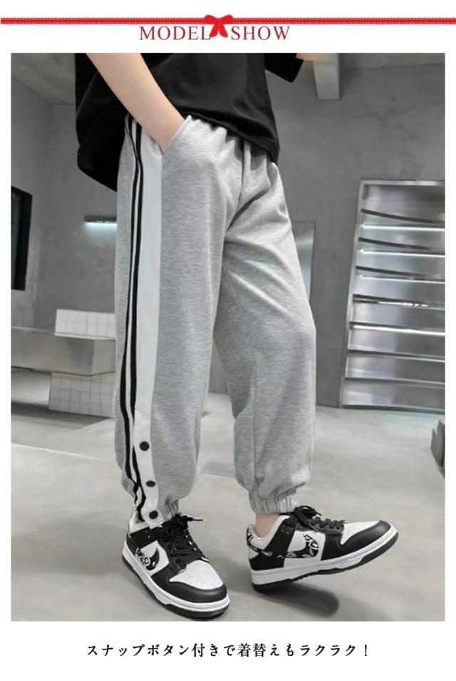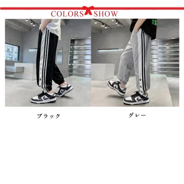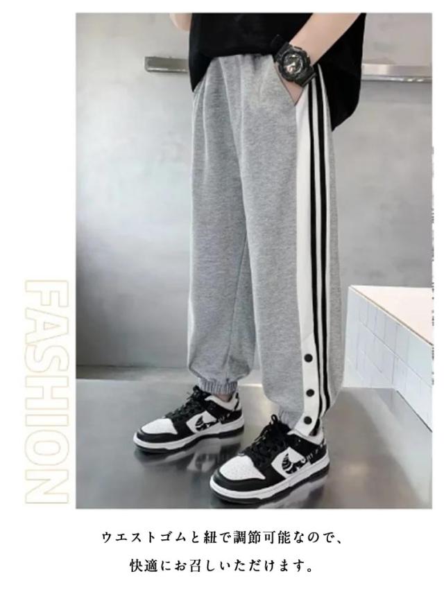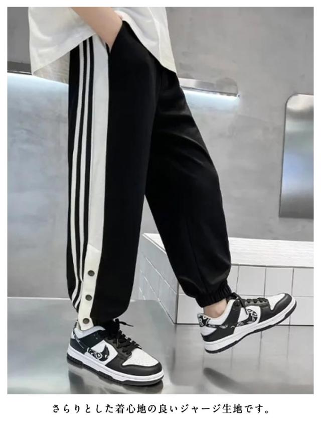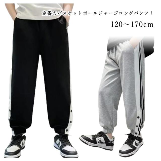 バスケットボールパンツ キッズ ジュニア 裾ボタン ジャージパンツ バスケパンツ バスケットボール 練習用パンツ サイドライン スナップボタン 長ズボン ロングパンツ ジャージ 下 男の子 女の子