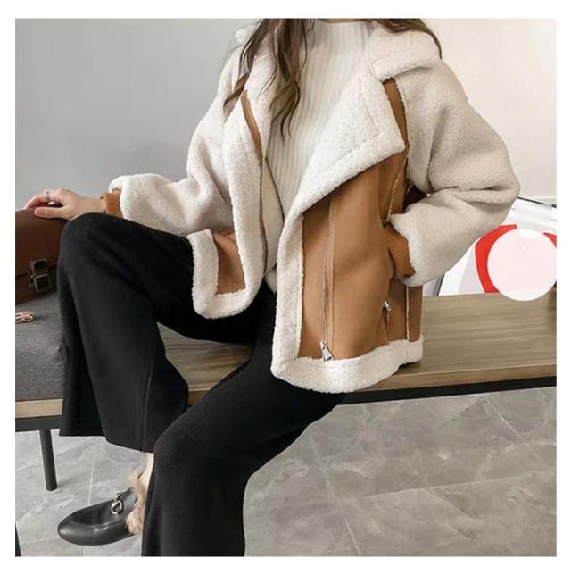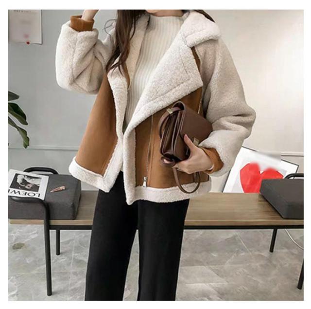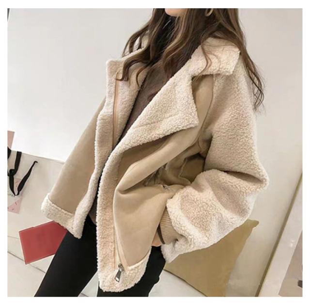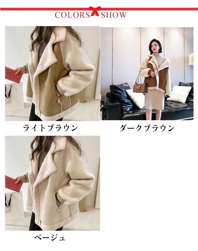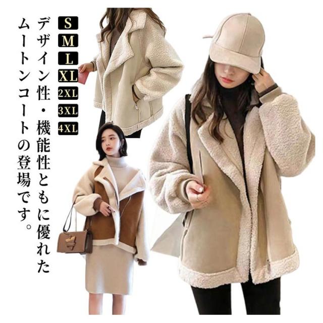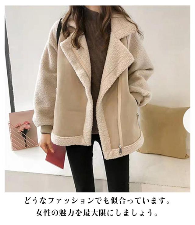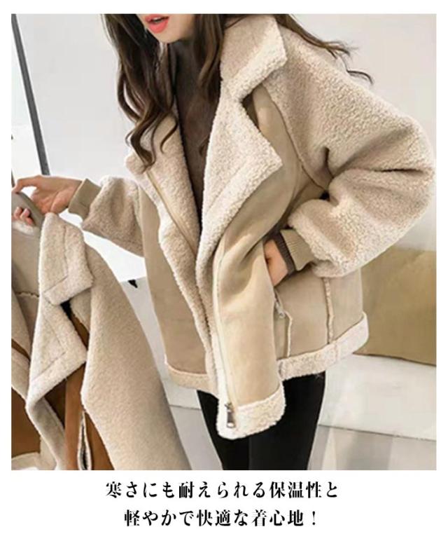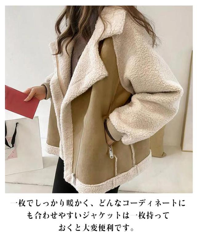ボアジャケット フェイクムートン ムートンコート コート ボアジャケット アウター ショート丈 ブルゾン ボアブルゾン ムートンジャケット ライダーズジャケット 防寒 防風 体型カバー 着痩せ 大きいサイズ