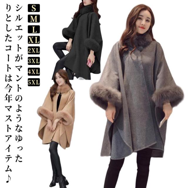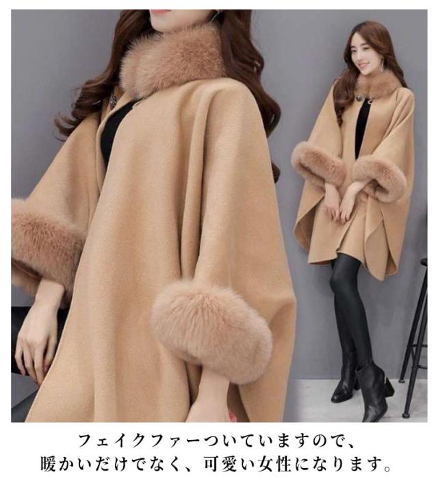ポンチョコート アウター 防寒 ポンチョ ファー付き マントコート トレンチコート ケープ レディース ファーコート ケープコート ポンチョコート マント コート 羽織り エレガント フェミニン 上品 高見え 春秋冬 長袖