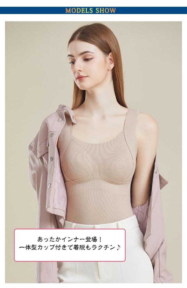 | 【カップ付き】【4color】【あったかインナー】 あったかインナー登場!一体型カップ付きで着脱もラクチン♪ あったかインナーは伸縮性抜群の生地でどんな動きにも体にフィットして窮屈さを全く感じません。 しなやかなストレッチ性によるフィット感と優しい肌触りをお楽しみください。 幅広ストラップで肩への負担やズレによるストレス軽減♪ | |
