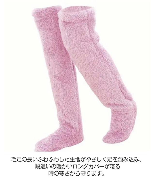 | ニーハイソックスとしても、レッグウォーマーとしても使える2WAYデザイン! 毛足の長いふわふわした生地がやさしく足を包み込み、段違いの暖かいロングカバーが寝る時の寒さから守ります。 暑いときには足先を出してムレ防止!脱がずに足先が出せるのでスリッパが履けます。トイレやキッチンでも大活躍。 厚みがあるから、更にふんわりあったか。毛足の長い素材が、暖かい空気層を作り、閉じ込めるため、履いてすぐ実感できます。 ゆったりとした履き心地で、長時間履いても締め付け感がなく、快適な履き心地を実現しました。 | |