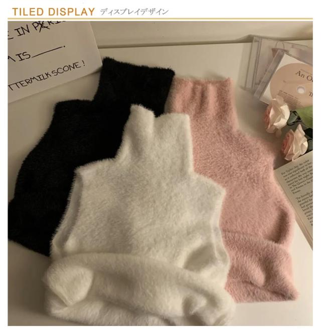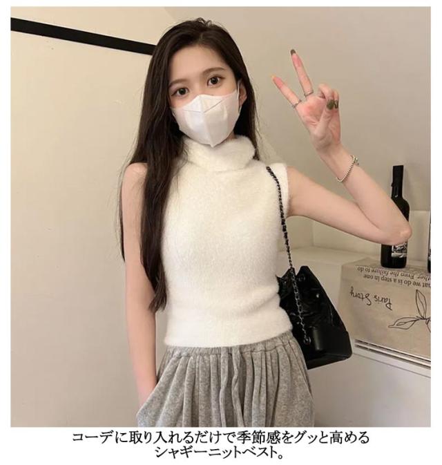 シャギーニットベスト シャギーニットベスト ニットタンクトップ ノースリーブ ニットトップス モヘアタッチニット 毛足長い 暖かい シャギーニット 防寒 ふわふわ タートルネック ノースリーブ セーター タイト