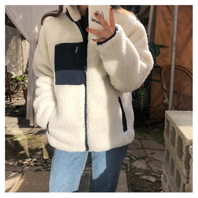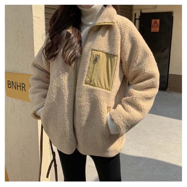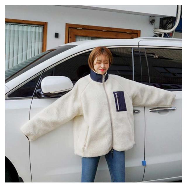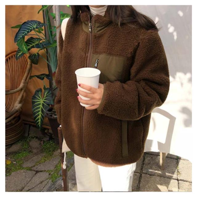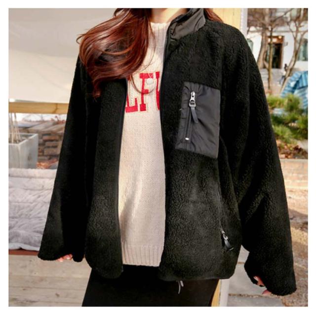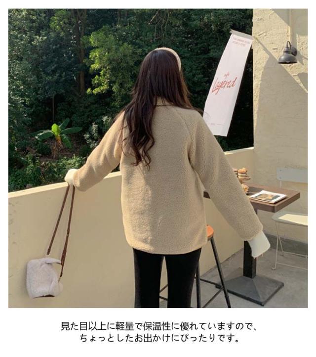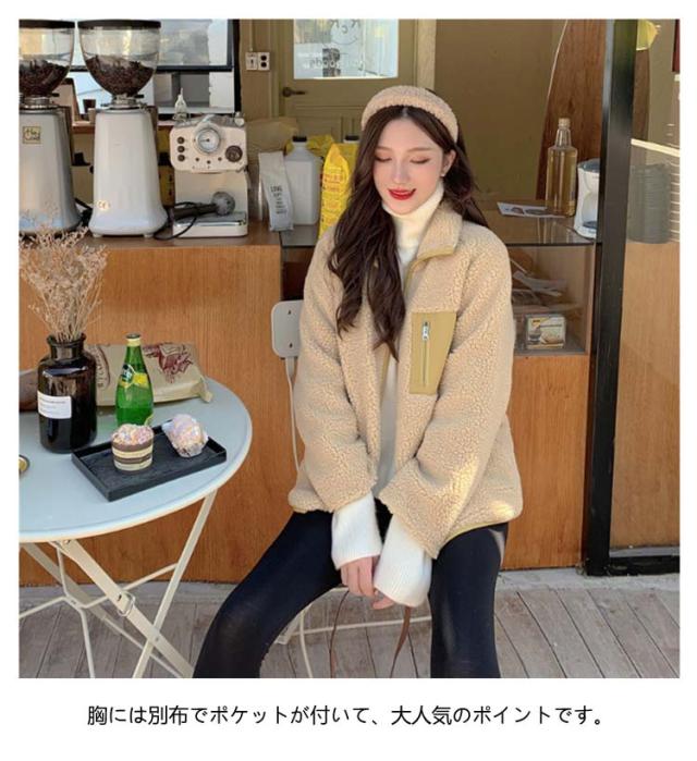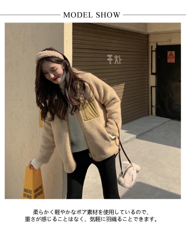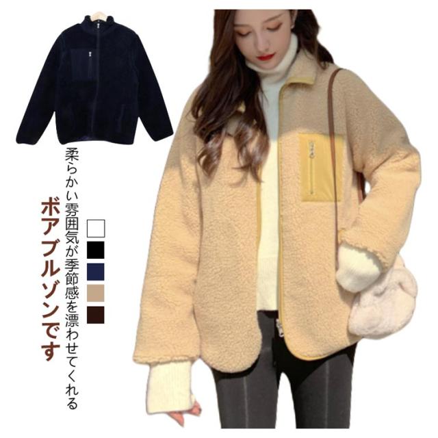ボアブルゾン フリースジャケット もこもこ ボアコート ジャケット アウター ボアブルゾン 胸ポケット付き 防寒 ブルゾン 防風 ノーカラー レディース カジュアル 秋冬 ゆったり 体型カバー アウトドア 暖かい