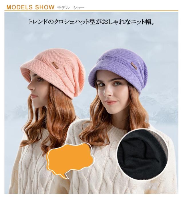 | もこもこ裏フリースが防寒にバッチリ♪ トレンドのクロシェハット型がおしゃれなニット帽。 顔周りをカバーしてくれるコンパクトなつば、小顔効果◎紫外線対策にも。 ふんわりとした起毛裏地で、熱が逃さず、暖かい。 | |