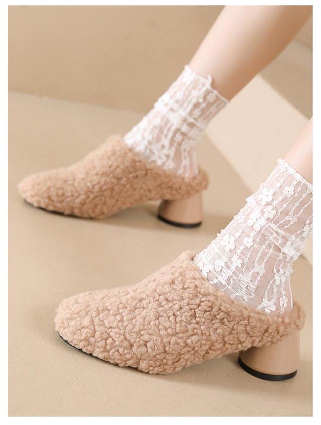 滑り止め ファーミュール もこもこボア かかとなし パンプス ハイヒール ファーパンプス おしゃれ つっかけ ボアサンダル サンダル シューズ 靴 ボアサンダル 履きやすい 痛くない 秋冬