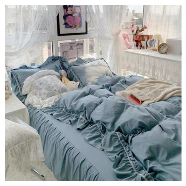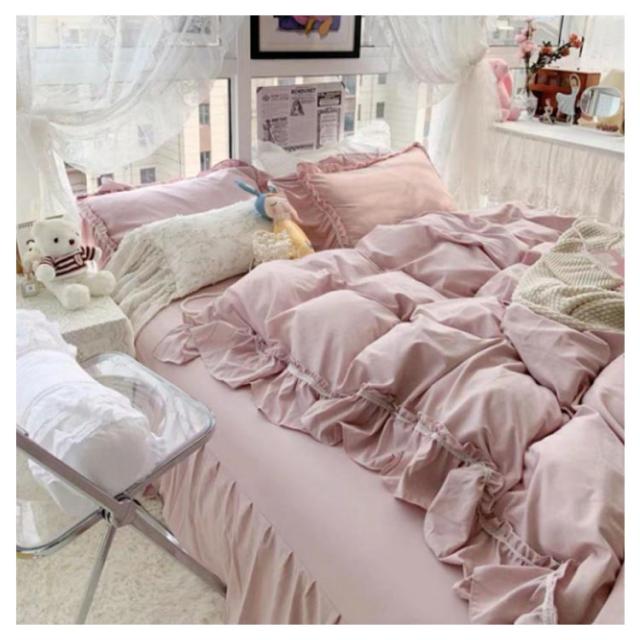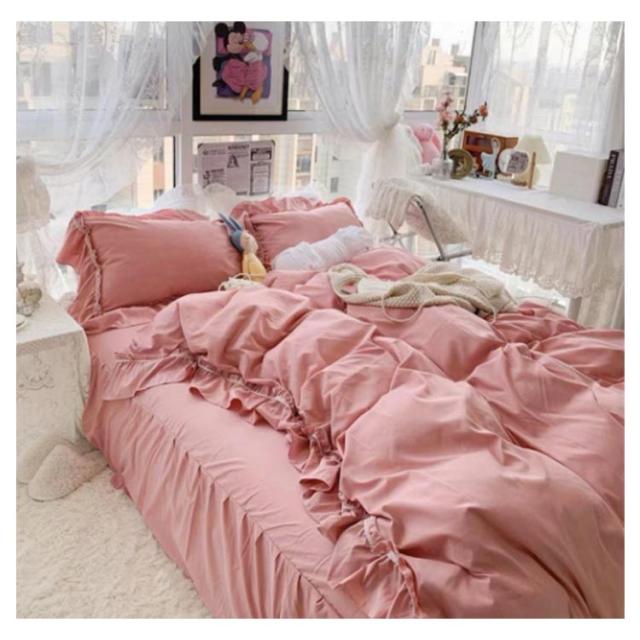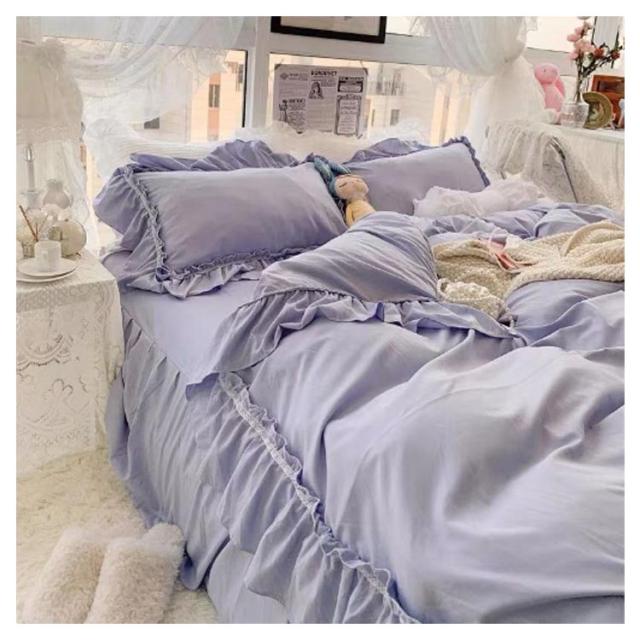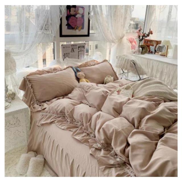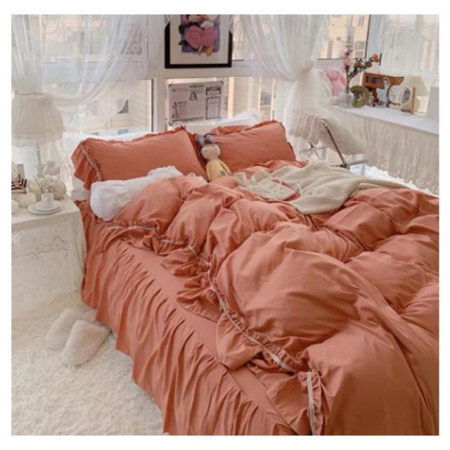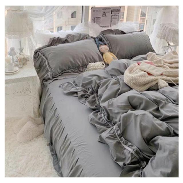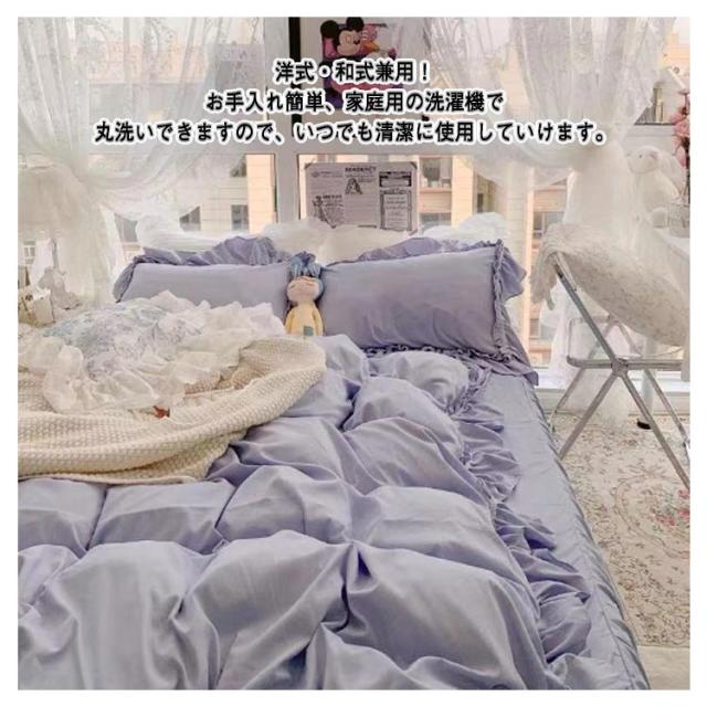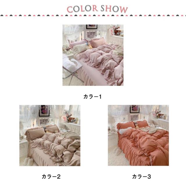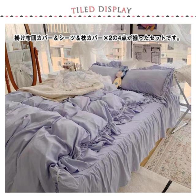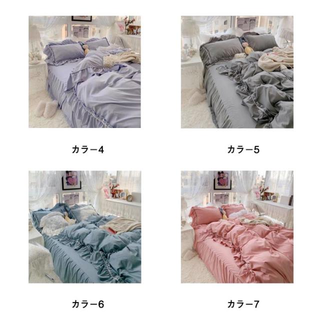 フリル 北欧 かわいい フレア 布団カバーセット 4点セット セミダブル 柔らかい 寝具 ベッドカバー おしゃれ 四季通用 枕カバー 姫系 寝具セット フラットシーツ ベッドスカート
