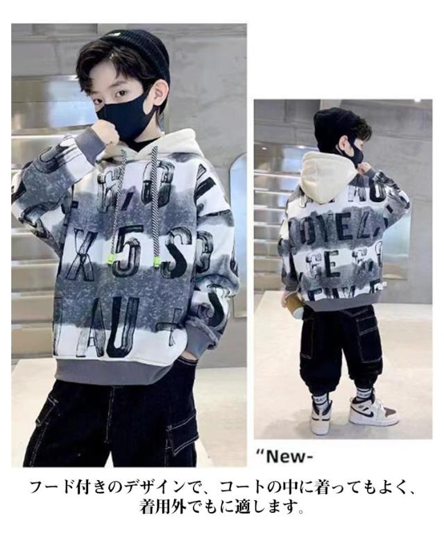 スウェット 厚手 キッズ プルオーバー フード付き 暖かい 長袖 ジュニア 秋 裏起毛 パーカー トップス シンプル トレーナー 男の子 ボーイズ 子供 ゆったり 春 子供 冬