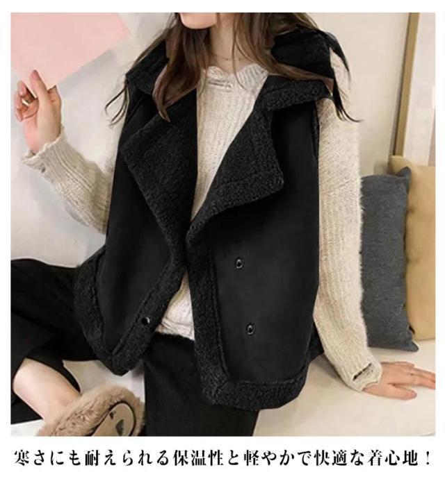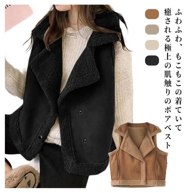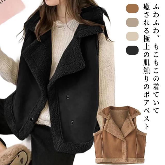 もこもこ アウター ボアベスト ノースリーブ ベスト フェイク 袖なし 毛皮ベスト 前開き ジャケット ムートンベスト ベスト オシャレ 暖かい 無地 大きいサイズ 体型カバー ふわふわ 重ね着風 韓国風 カジュアル