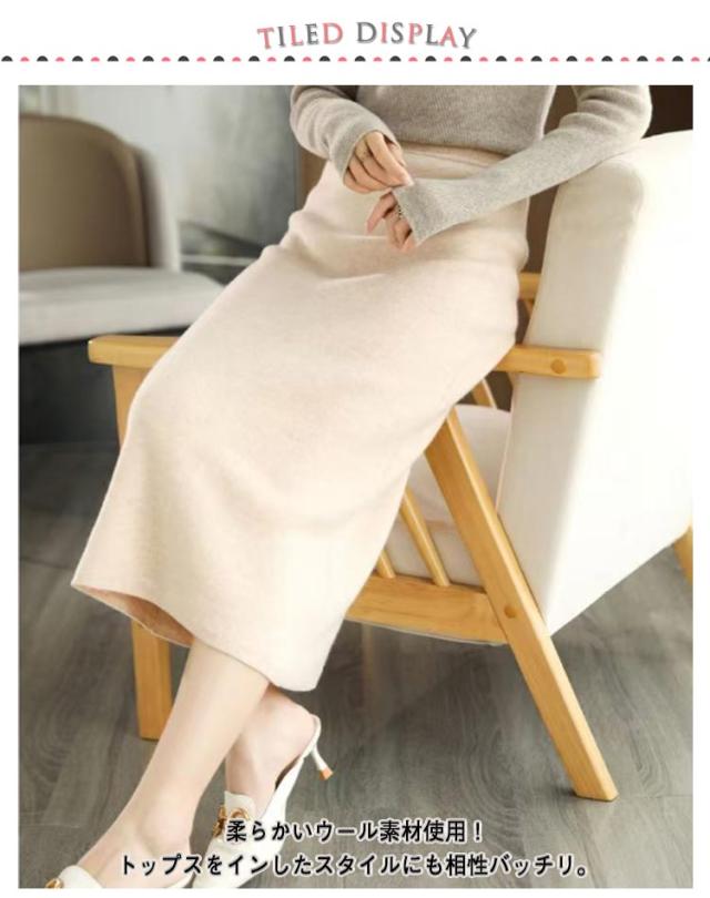 秋冬 ニットスカート ウール タイト ウール スカート 細見えロングスカート きれいめ ストレートスカート 暖かい S M L XL