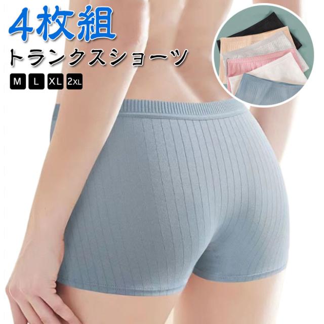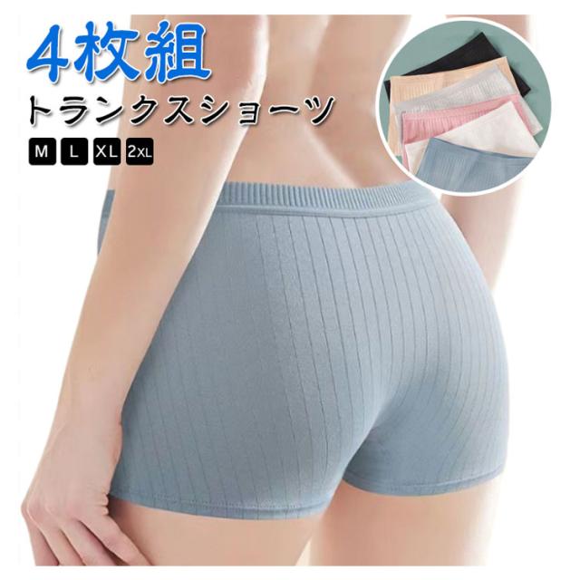 【4枚組】トランクス 肌着 無地 レディース 【4枚組】トランクス 女性用 下着 インナーパンツ コットン 抗菌 ショーツ リブ 通気性 綿 一分丈 おやすみパンツ スタンダード 生理 すっぽり 深ばき ストレッチ ボクサーパンツ タップパンツ