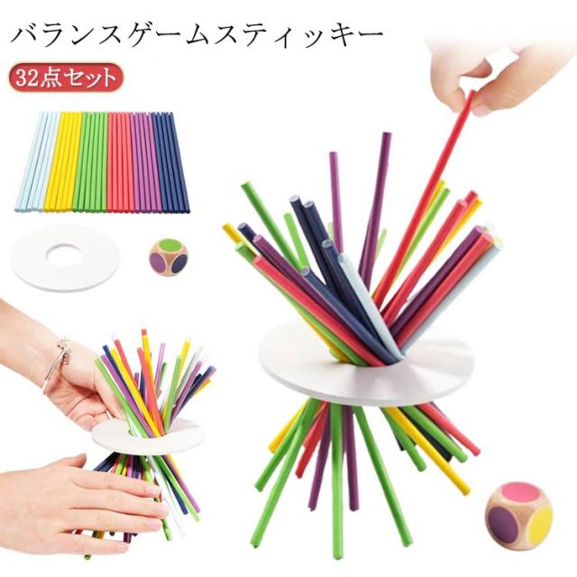 知育のプロ ギフト おうち時間 バランス キッズ ボードゲーム おもちゃ 家族で遊べる ボードゲーム テーブルゲーム 32点セット 木製バランススティック バランスゲーム 家族で遊べるゲーム ボード