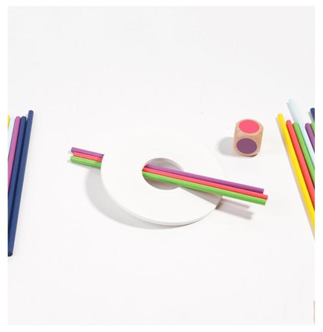 | サイズについての説明 | 32点セット:スティッキー30本、リング1個、サイコロ1個。 遊び方の説明 1、全てのスティックを束にして片手で握ってください。 2、木の輪を束の上から通して真ん中まで下ろし、ゆっくりと束から手を離して下さい。 3、全体が動かなくなったら、ゲーム準備が完了です。 4、プレーヤは順番にサイコロを投げて下さい。 5、全体が崩さないように注意しながら出たサイコロの色のステイックを取り出して下さい。 6、全体が崩したら(または、スティックが3本しか残らなかった場合)ゲームは終了します。全員は自分の得点を計算し、最も得点が高い人は勝ちです。 |