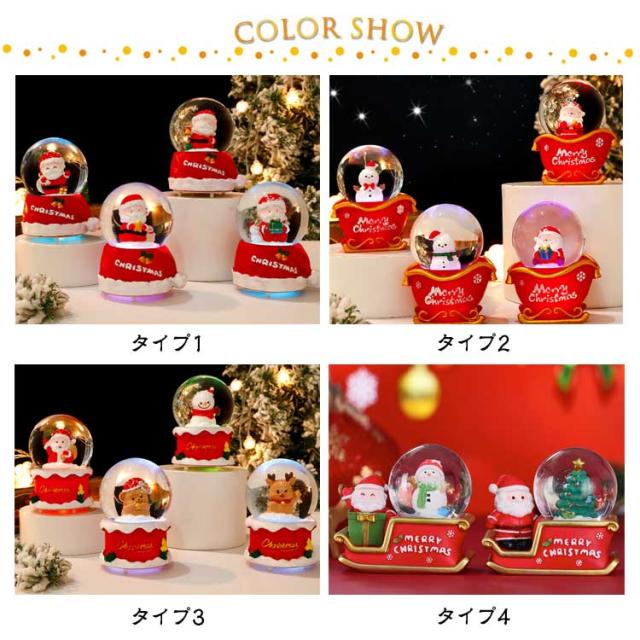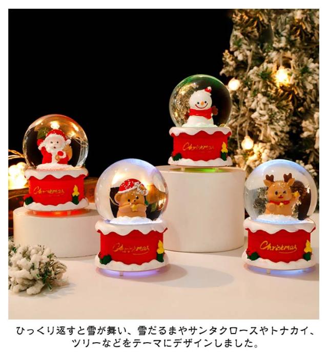 | クリスマスムードを盛り上げてくれるアイテム。クリスマステーマのスノードーム。【全20タイプ】【2個セット】 ひっくり返すと雪が舞い、雪だるまやサンタクロースやトナカイ、ツリーなどをテーマにデザインしました。 底部にLEDライト付き。 色合いやフォルムなど細かなところまで丁寧に表現されているので、インテリアとしてお部屋に飾るのも素敵です。 デスクなどちょっとしたスペースに飾りやすいサイズ感も◎ | |