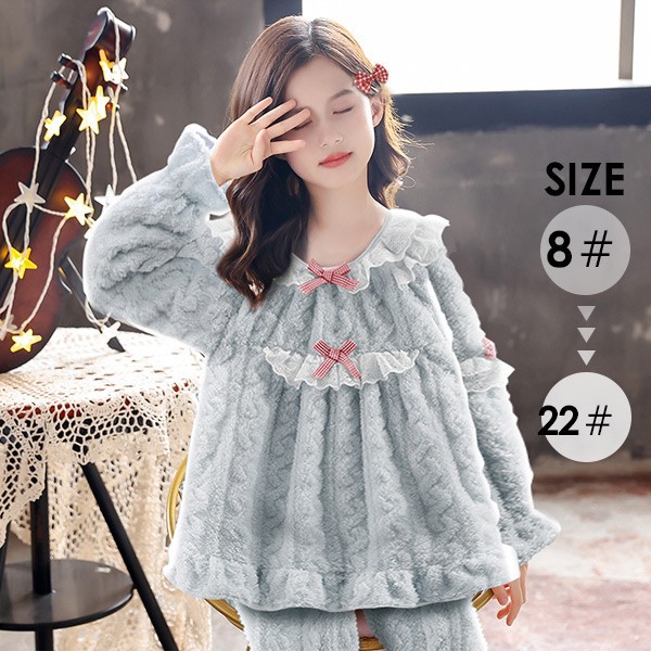 ルームウェア 女の子 キッズパジャマ 冬 長袖 上下セット ブルー もこもこ 子供 寝巻き ナイトウェア かわいい おしゃれ オシャレ 子ども ふわふわ ふわもこ 裏起毛 可愛い 韓国 部屋着 誕生日 プレゼント 暖かい ロングパンツ