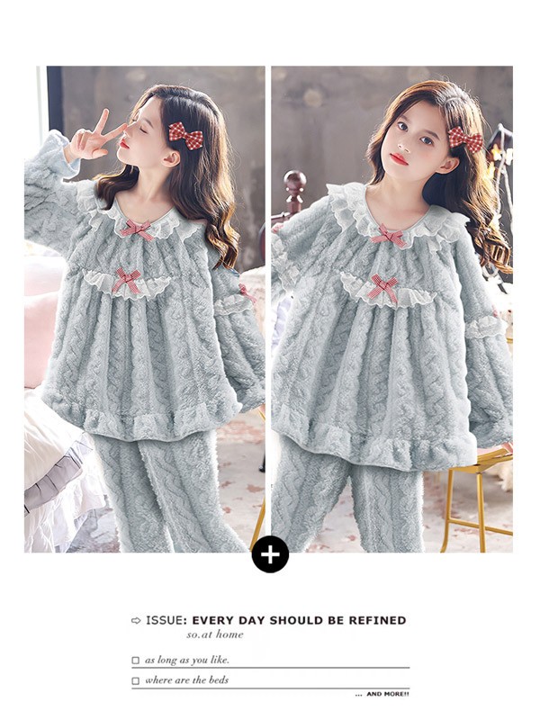 ルームウェア 女の子 キッズパジャマ 冬 長袖 上下セット ブルー もこもこ 子供 モコモコ 寝巻き ナイトウェア かわいい おしゃれ オシャレ 子ども ふわふわ ふわもこ 裏起毛 可愛い 韓国 部屋着 誕生日 プレゼント 暖かい ロングパンツ dh004zucyh5 dh004zu