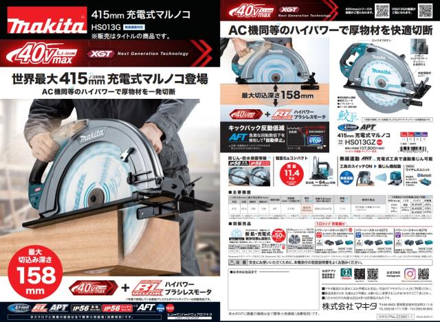 ※1:充電式マルノコにおいて。2024年9月現在、マキタ社調べ。