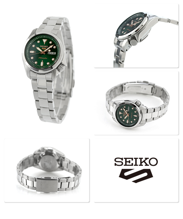 正規品 7年保証キャンペーン 送料無料 セイコー5 スポーツ 日本製 レディース 腕時計 SRRA005 Seiko 5 Sports SKX Series アナログ グリーン ◆国内未発表モデルとなるSKXシリーズ(28mm)が登場。スポーティなダイヤルレイアウトが魅力的なスモールサイズが特徴。4R36と同じスペックを持った2R06を搭載し、ケース径28mmにダウンサイジング。 海外市場で定番となる人気のカラーリングを採用し、ゴールドのアクセントカラーがポイント。メタルブレスレットの中駒を鏡面に仕上げ、スポーティながらも華やかな印象を演出。シンプルなデザインでシーン問わずお使いいただけ、プレゼントにもおすすめです。 発売日:2024年12月発売