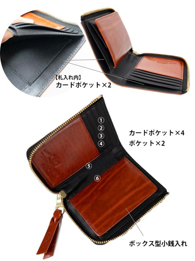 小銭入れはボックス型で、カードポケット部分がベロのようになっている札入れが特徴。