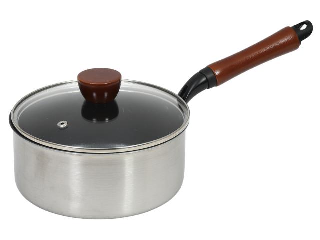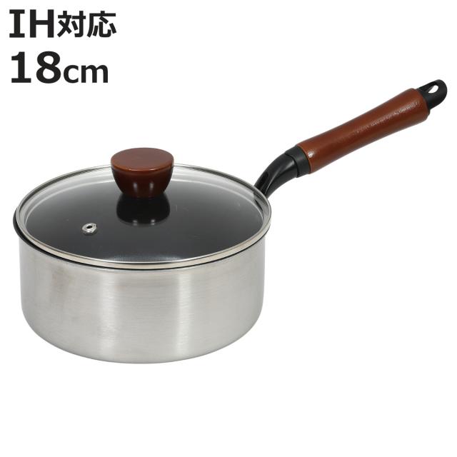 片手鍋 18cm IH対応 ガラス蓋付き ファストクック 2層鋼ダイヤモンドコート ( ガス火対応 オール熱源対応 片手なべ 鍋 ふっ素加工 軽い 18センチ アルミ鍋 調理鍋 フッ素加工 ガラス蓋 ステンレス アルミ 2層構造 木柄 )