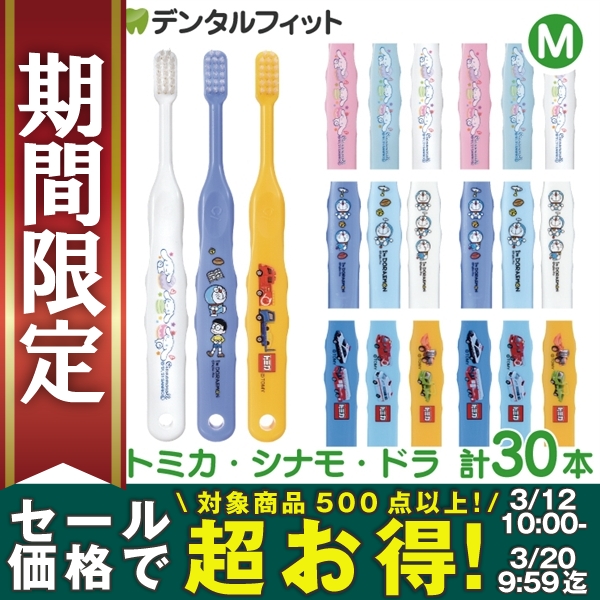 【★50%OFF 3/20 9:59迄】【メール便選択で送料無料】子供 歯ブラシ まとめ買い 子供向けキャラクター歯ブラシ 30本セット Mふつう (トミカ・シナモロール・ドラえもん) (メール便2点まで)