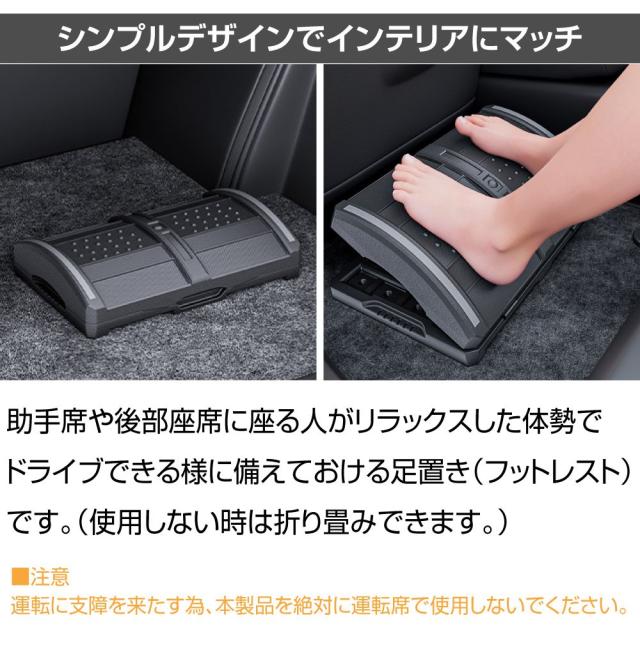 長距離ドライブでも安心! 設置するだけでリラックスした体勢でドライブできるようになる汎用フットレストです。 シンプルデザインでインテリアにマッチ! 8段階の角度調整が可能! 折り畳み式で使用しない時はトランクにコンパクト収納! 自動車だけでなくオフィスなどでも使用可能! |