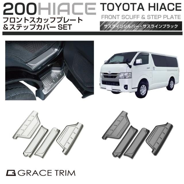 200系 ハイエース ステンレススカッフプレート&ステップカバー 4pcs 全2カラー 200HA-ACC-F01 | ドア ステップ スカッフプレート カバー インテリアパネル プレート ガード ステップガード 傷 保護 パーツ カスタム ステンレス トヨタ