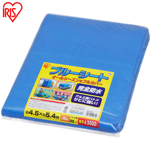 (検索用:ブルーシート・厚手・防水・#3000・4.5×5.4m・3000・ハトメ・防水シート・屋外・床・ベランダ・屋根・養生・アウトドア・レジャー・大きい・防災・防寒・4905009200399・アイリスオーヤマ)