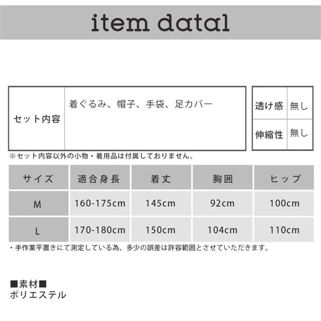 ■セット内容:ジャンプスーツ+帽子+手袋+足カバー 4点セット