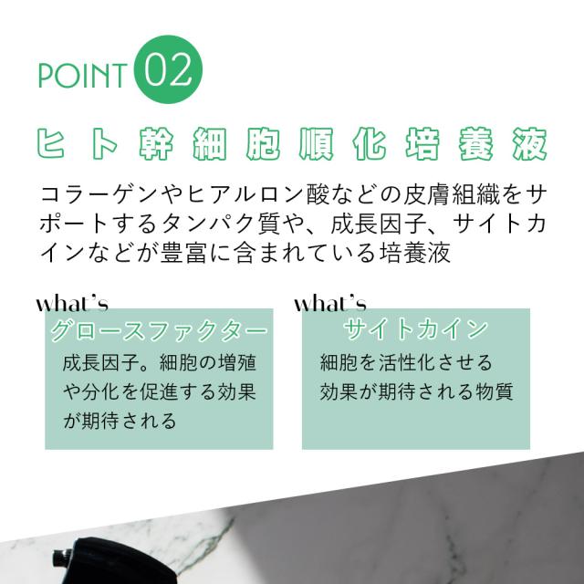ミスト:水、サッカロミセス(黒砂糖/プラセンタエキス)発酵液、腐植土抽出物、イソべンチルジオール、ヒト毛根幹細胞順化培養液、ヒトサイタイ血由来幹細胞エクソソーム、ヒト臍帯血細胞順化培養液、ヒト幹細胞順化培養液、レシチン、水添レシチン、ローマカミツレ花エス、ローズマリー葉エキス、ニンニク根エキス、セイヨウキズタ葉/茎エキス、セイヨウアカマツ球果エキス、ゴボウ根エキス、オランダガラシ葉/茎エキス、オドリコソウ花/葉/茎エキス、アルニカ花エキス、BG、グリセリン、1,2-ヘキサンジオール、トコフェロール、コレステロール、フェノキシエタノール スクラブ:スクロース、グリセリン、オレフィン(C14-16)スルホン酸Na、(ベン酸/エイコサン二酸)ポリグリセリルー10、ポリソルベート20、香料(C14-22)アルコール、(C12-20)アルキルグルコシド、水、BHT、クエン酸Na、リン酸3 Na、BG、アルガニアスピノサ核油、ニコチンアミドモノヌクレオチド、ホホバ種子油、オリーブ果実油、シクロヘキサンー1,4ージカルボン酸ビスエトキシジグリコール、イソマルト、水添レシチン、3ーグリセリルアスコルビン酸、フィトステロールズ、セラミドNP、セラミドNG、セラミドAP、フェノキシエタノール、ツボクサ葉/茎エキス、ヒアルロン酸N a、レシチン、ロドデンドロンフェルギネウム葉培養細胞エキス、ハトムギ種子エキス、プラセンタエキス、アロエベラ葉エキス、トコフェロール、青1、黄4 |