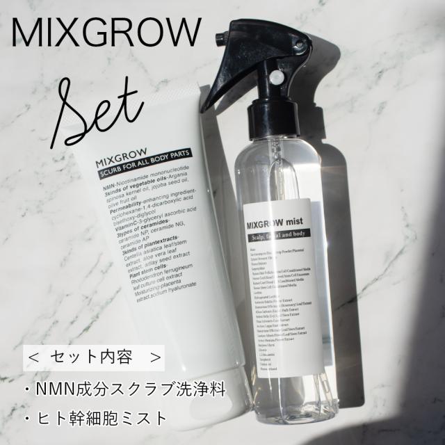 【SET】MIXGROW ミクスグロウ ミスト200ml・スクラブ洗浄料 200g ヒト幹細胞順化培養液 ヒト毛根幹細 エクソソーム 毛髪 活性化 発毛にも期待 全身使えるミスト NMN配合スクラブ洗浄料 ヒアルロン酸 セラミド エイジングケア mico ミコ ミクスグロー ミックスグロー
