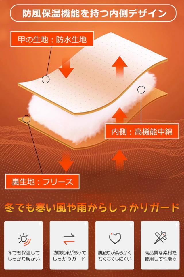 【ポイント1 防寒・防風・防水・保温機能付き】