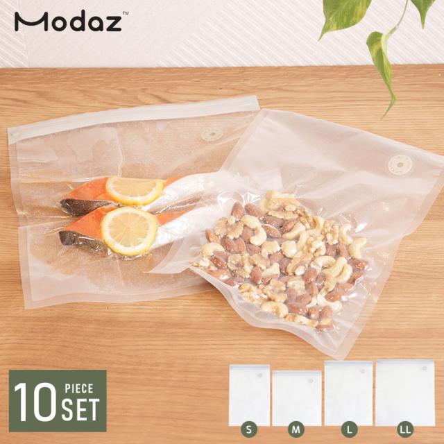 真空保存シリーズ Modaz 真空パック 真空保存容器 専用袋 真空袋 10枚セット 密閉容器 真空パック機 真空シーラー フードシールド 袋 脱気シーラー 汁物対応 冷凍 食品 保存 強力吸引 簡単操作 作り置き 便利 おすすめ ハンディ 乾湿対応 多機能 乾燥物
