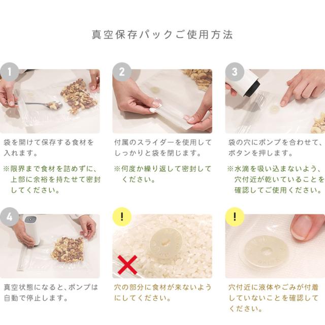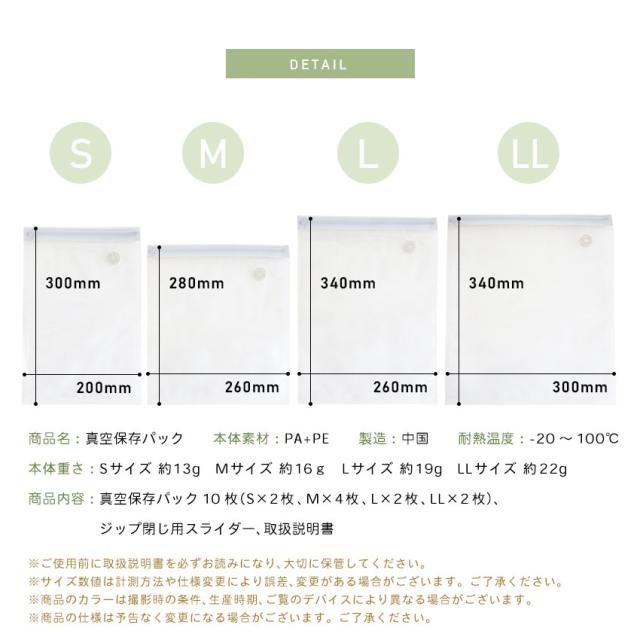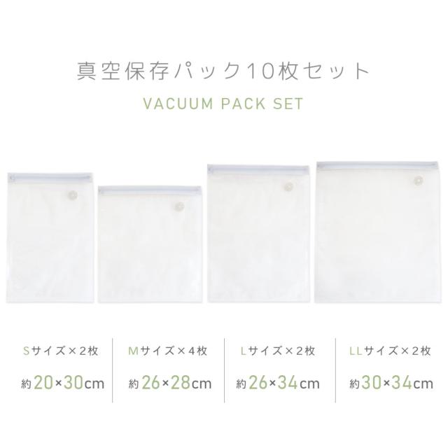 | 真空保存パック10枚セット。 「真空」の力で長持ち&コンパクト! |