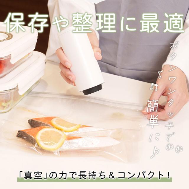| 【電動ハンディ真空保存ポンプ】 簡単操作&取り回しらくらくなハンディサイズの真空ポンプ。 複雑な操作なしで、セットするだけでお使いいただけます。 |