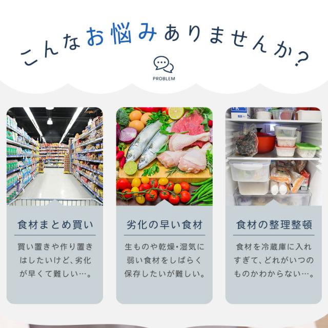 | 【冷蔵庫・冷凍庫の整理整頓に】 食品をぎゅっと圧縮してきれいに整理整頓。保管しやすくします。 |
