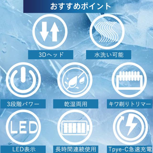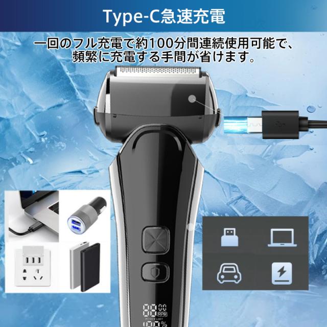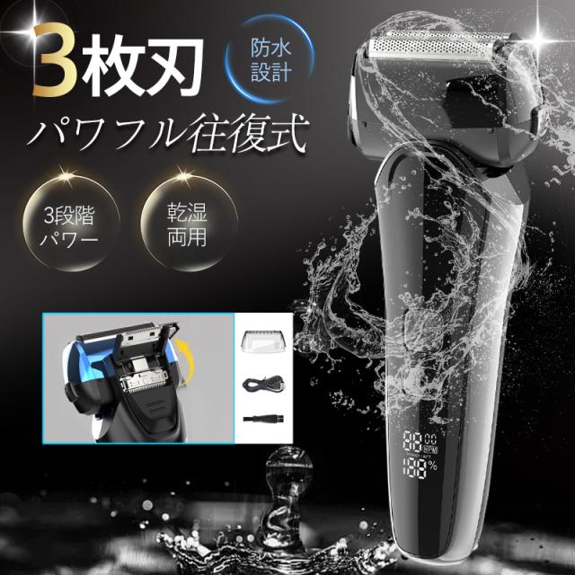 シェーバー 電気シェーバー メンズシェーバー 髭剃り 3枚刃 往復式 3Dヘッド 3段階変速 Type-C充電式 防水 電動シェー