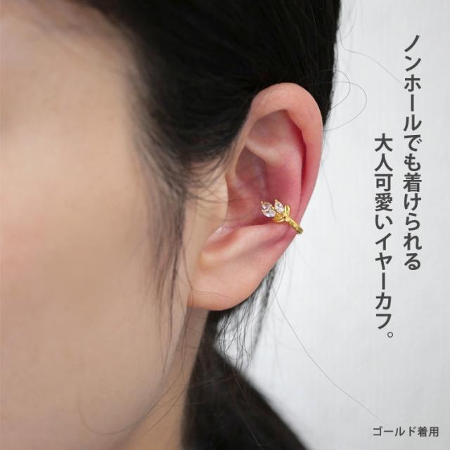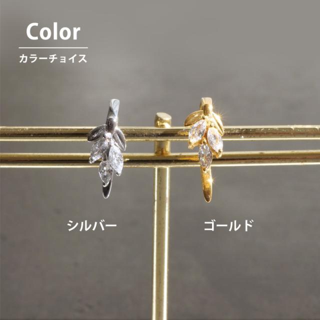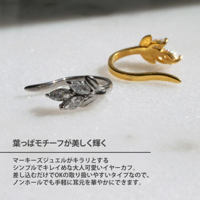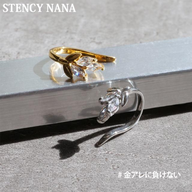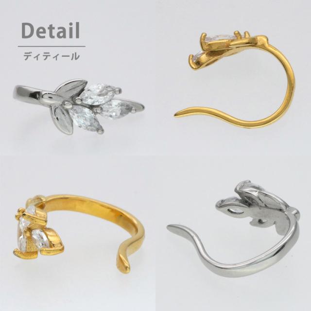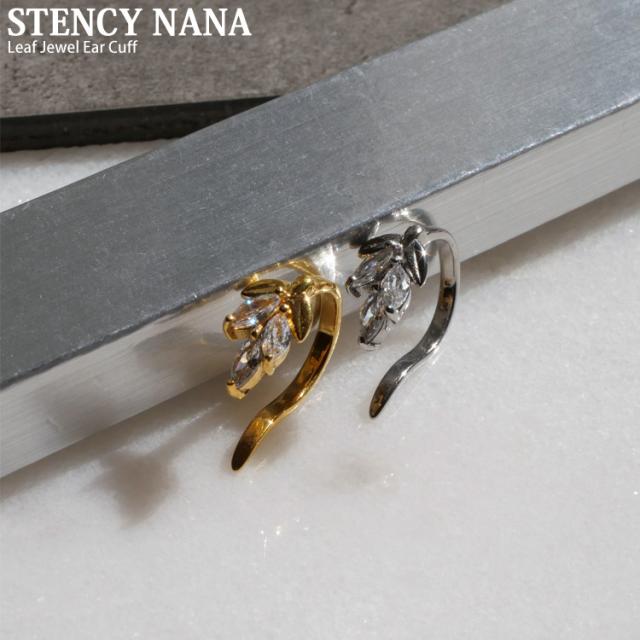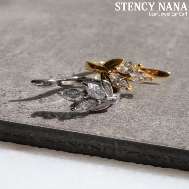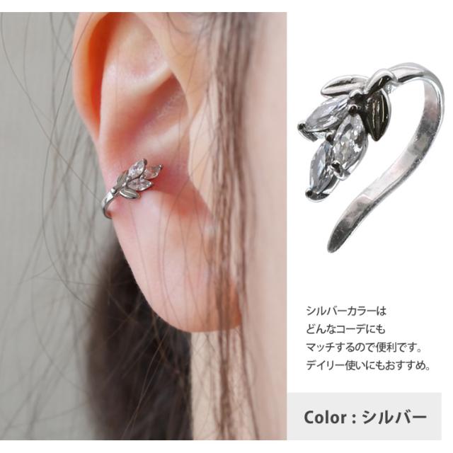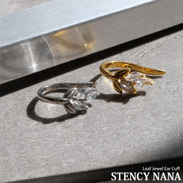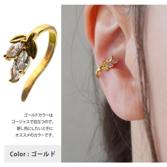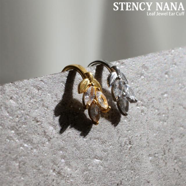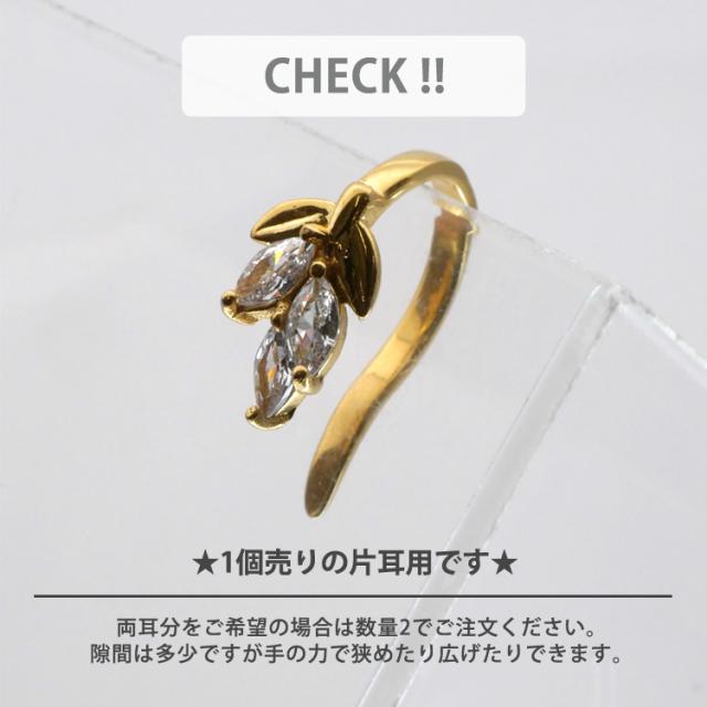 金属アレルギー対応 ステンレスイヤーカフ リーフジュエルイヤーカフ 片耳用 イヤーフック 316L