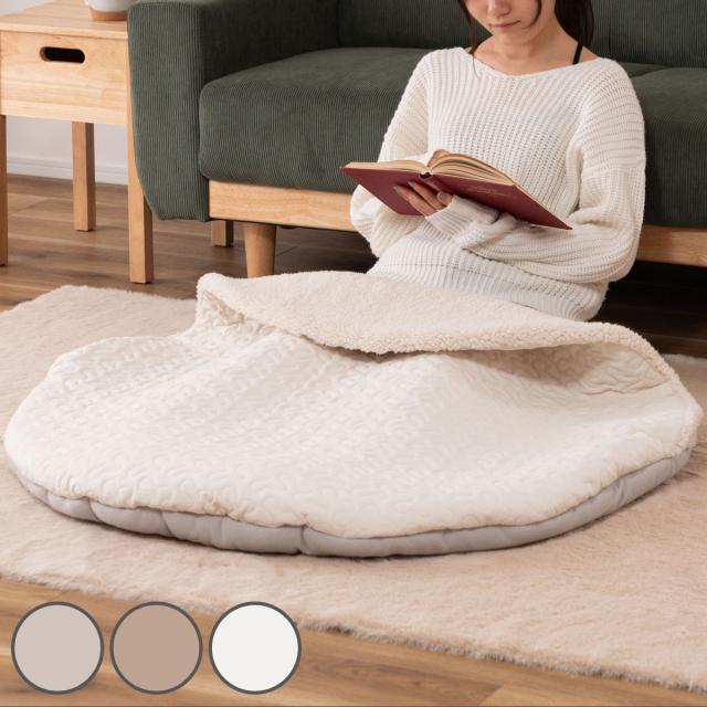 サンドクッション ラウンド ボア生地 ブランケット ( クッション ボア 寒さ対策 円形 ひざ掛け 淡色 プレゼント コンパクト ベージュ モカブラウン ホワイト あったかグッズ )