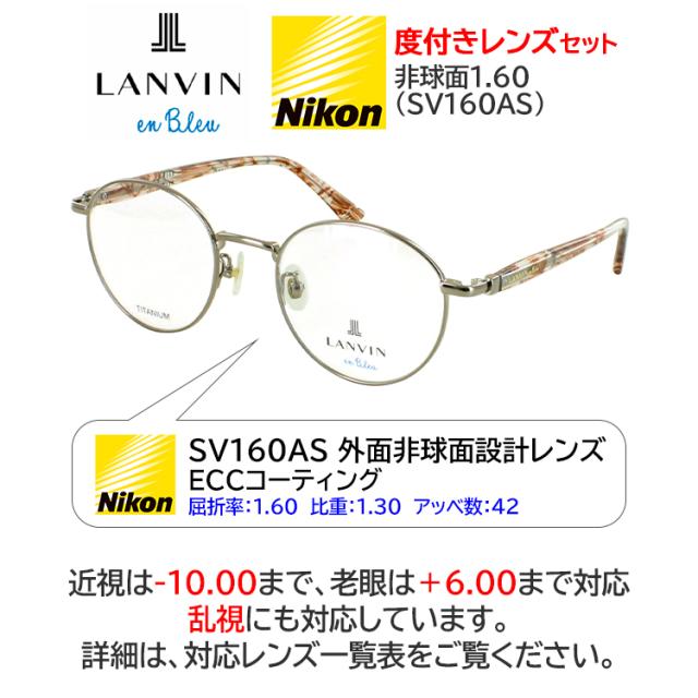 ランバンオンブルー メガネ フレーム ニコン 薄型 非球面レンズ セット