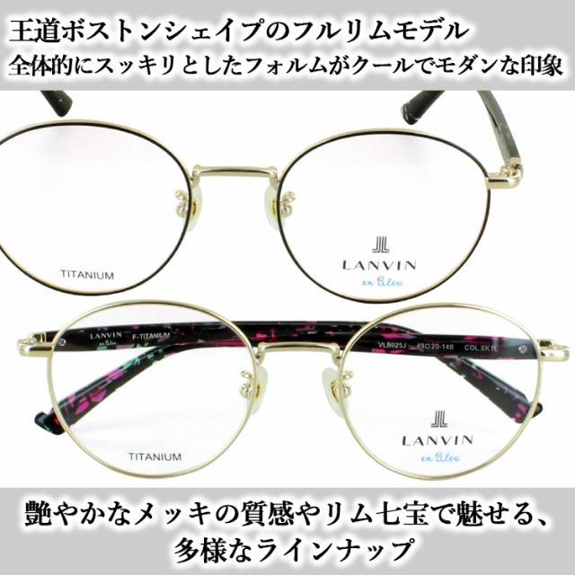 度付き メガネ ランバンオンブルー 眼鏡 レディース ボストン チタンフレーム 度入り 度あり 近視 乱視 遠視 老眼 ブランド V VLB025J 0C1G 0I88 0K1B 0K1L