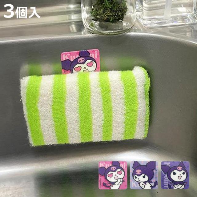 スポンジラック キャッチフック 3個入 クロミ ( スポンジホルダー タオルホルダー フック タオルフック 日本製 キャラクター 面ファスナー コンパクト 洗面用品 バス用品 キッチン用品 ホルダー 浮かせる 貼付け サンリオ )