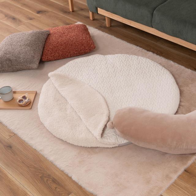 サンドクッション ラウンド ボア生地 ブランケット ( クッション ボア 寒さ対策 円形 ひざ掛け 淡色 プレゼント コンパクト ベージュ モカブラウン ホワイト あったかグッズ )