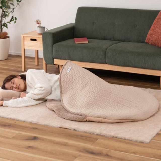 脚を曲げて入れば、身体がすっぽり収まるサイズ感です。お昼寝タイムのお布団代わりにもお使いいただけます。