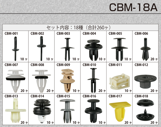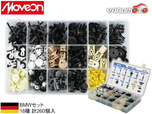 Moveon BMW用 クリップセット 18種 計260個入 CBM-18A 内張り カーファスナー 内外装 ケース入り 純正同等 同色 送料無料