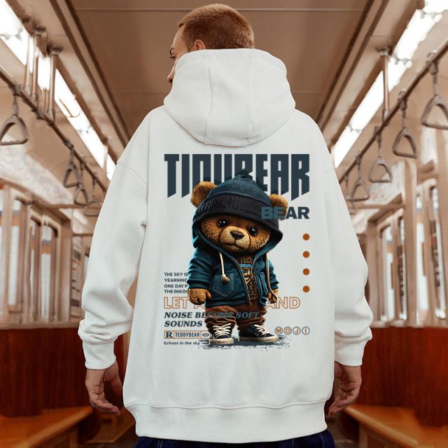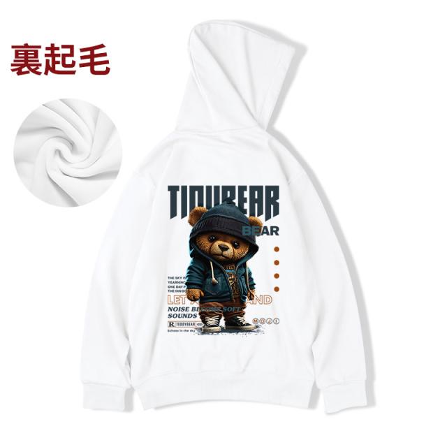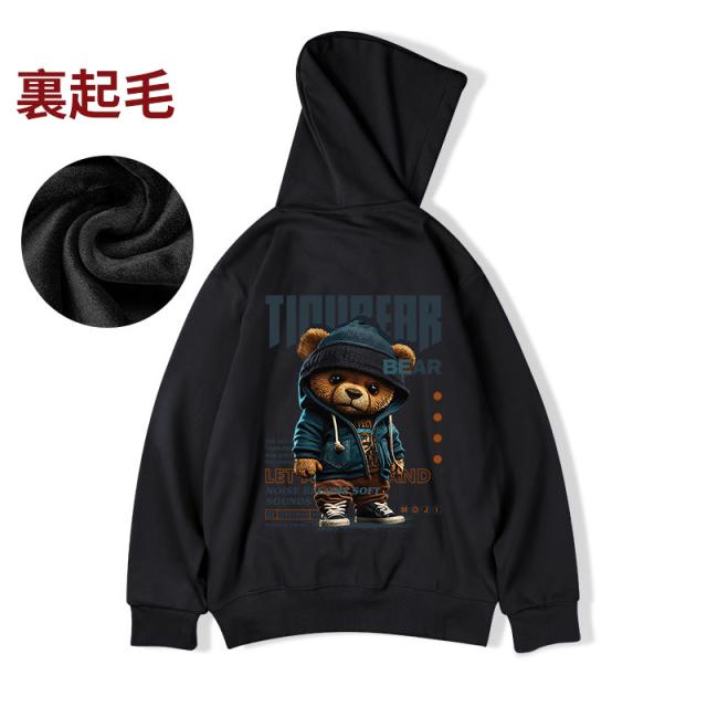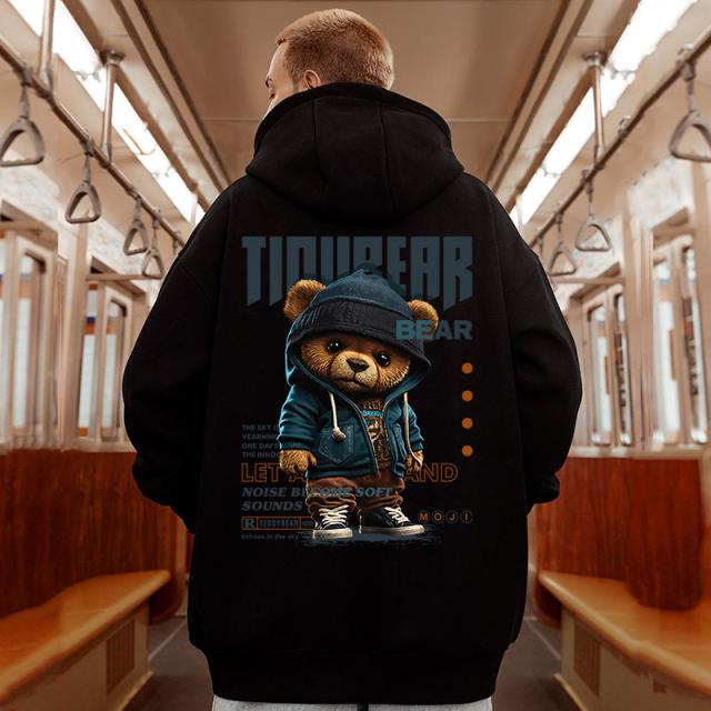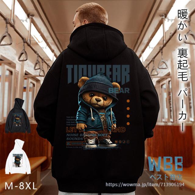 メンズ パーカー 秋冬 大きいサイズ 裏起毛パーカー メンズ プルオーバー くま柄 スウェット プリント トップス フード付き ゆったり カジュアル ファッション M-8XL